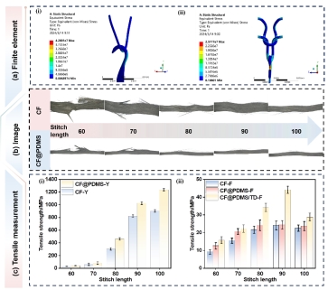 本论文针对碳纤维无损高品质编织机制这一关键科学难题展开深入研究,首先深入揭示碳纤维内部缺陷与织造磨损根本性原因,提出碳纤维织造磨损主要因素:上机度目(织物密度)以及接触面积(碳纤维与舌针、碳纤维与碳纤维);借助有限元模拟碳纤维成圈过程中应力分布情况;通过聚二甲基硅氧烷对碳纤维束表面进行改性处理制备出高耐磨、低损伤碳纤维预制件;明晰碳纤维断丝与复合材料宏观力学性能间的相互作用机制,该研究为碳纤维无损高品质成圈织造提供理论支持与技术基础,解决长期存在的关键技术问题。