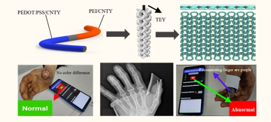 近日,威廉希尔/针织技术教育部工程研究中心马丕波教授团队在材料领域TOP期刊《Materials & Design》上发表题为“Hybrid Thermoelectric-Triboelectric Smart Knitted Fabric for Real-Time Monitoring of Vascular Crisis and Postoperative Recovery of Severed Fingers”的研究论文。williamhill威廉希尔马丕波教授、陈超余副研究员与无锡市第九人民医院赵刚教授为论文共同通讯作者;williamhill威廉希尔董智佳副教授与侯锐华硕士为论文共同第一作者。该研究得到了国家自然科学基金(52303055, 52373058)、江苏省自然科学基金(BK20221094)、中国博士后科学基金(2022TQ0123)、中国纺织工业联合会应用基础研究基金(J202408)与无锡市卫生健康委重点科研项目(Z202219)支持。