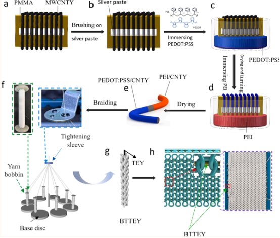 断指再植手术是治疗断指的最有效方法,但术后血管危象的发生率较高,可能导致再植失败。传统的血管危象监测依赖于医护人员的定时观察和红外测温,存在精度低、实时性差等问题。为了解决这一问题,本研究开发了一种基于多壁碳纳米管纱线(MWCNTY)的混合热电-摩擦电纱线(BTTEY),并通过针织技术将其编织成双罗纹衬纬热电-摩擦电织物(DTWL-TTEG)。该织物具有优异的热电和摩擦电输出性能,热电功率密度在30 K温差下可达89μW·m?2。织物柔软、透气且具有良好的生物相容性,能够极短时间内响应温度变化并具有极高的灵敏度。基于DTWL-TTEG,开发了智能报警和术后恢复监测系统,能够实时监测血管危象并提供及时报警,同时可用于断指术后恢复的监测。该研究为热电效应与摩擦电效应的结合提供了新的方向,展示了其在医疗保健和安全预警领域的巨大应用潜力。