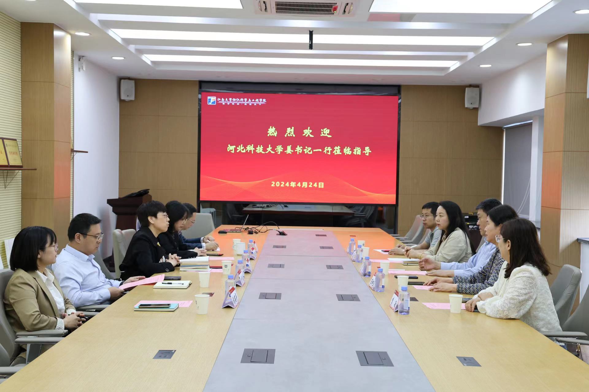 4月24日,河北科技大学党委常委、纪委书记、监察专员姜昆,河北科技大学纺织服装公司党委书记陈树玉等一行来williamhill交流座谈。公司党委书记张菁燕、经理付少海热情接待。
