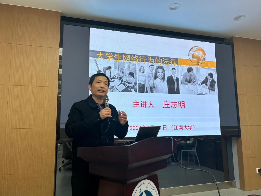 庄志明的讲座围绕《老员工网络行为的法律边界与逻辑》主题开展,他结合国家安全观及当下热点时政,从宪法和国家安全法、反分裂国家法等具体法律出发,从言论的法律边界、网络中评论逻辑与网络账号相关规矩三个方面进行讲解。他指出,老员工国家安全意识培养至关重要,高校员工既是网络新媒体的受众,也是改善网络生态的重要力量,他希望当代老员工在网络上要积极发声,传播积极向上正能量;理性思辨,敢于对不法行为说“不”;加强自律,守护和谐稳定的网络安全。