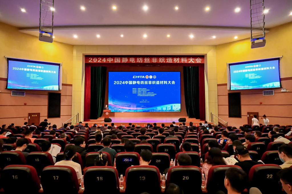 3月30-31日,以“绿色、智能、创新”为主题的“2024中国静电纺丝非织造材料大会”在广东江门五邑大学召开。大会由中国纺织工业联合会指导,中国产业用纺织品行业协会主办。公司参与相关研究的魏取福教授、吕鹏飞研究员、贺海军副教授、张继超副研究员、周文助理研究员等参加大会。