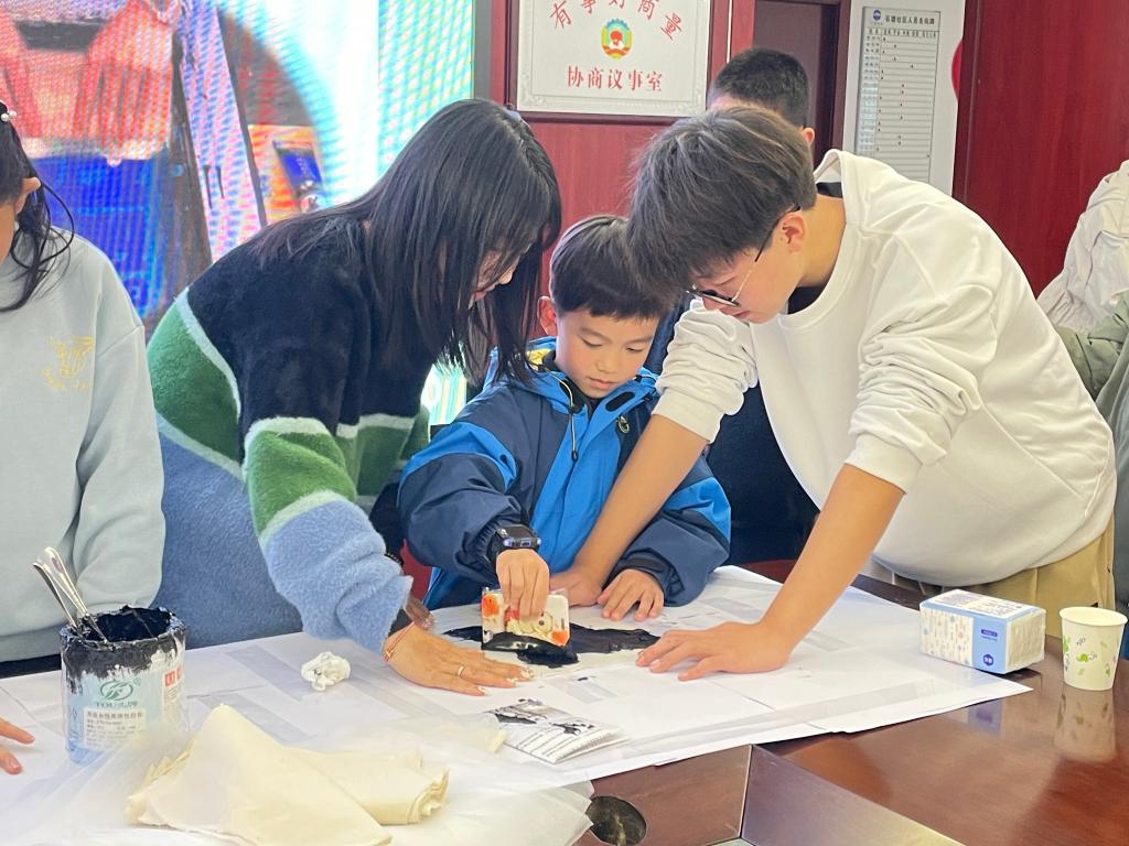 实践团主讲人李子心用饱满的热情、活泼的语言,从与生活息息相关的纺织品入手,以小见大,与小朋友们共同变身“面料大侦探”“洗衣小助手”“衣物守护者”“服装魔法师”,从面料选择、洗护应知、存放指南、静电现象等四个方面揭示纺织服装背后的科学知识。在宣讲过程中,还加以现代纺织工业的前沿成果介绍,让小朋友们了解到如今的中国纺织工业正以“衣被天下”的格局与气势,奋力攀登世界纺织强国之巅,点燃了他们心中求知探索的火种。宣讲后,实践团志愿者带领小朋友亲手体验纺织特色活动——丝网印花,通过细密的网格在织物上传递颜料,创造出丰富的图案设计,体会纺织行业独特的艺术魅力。