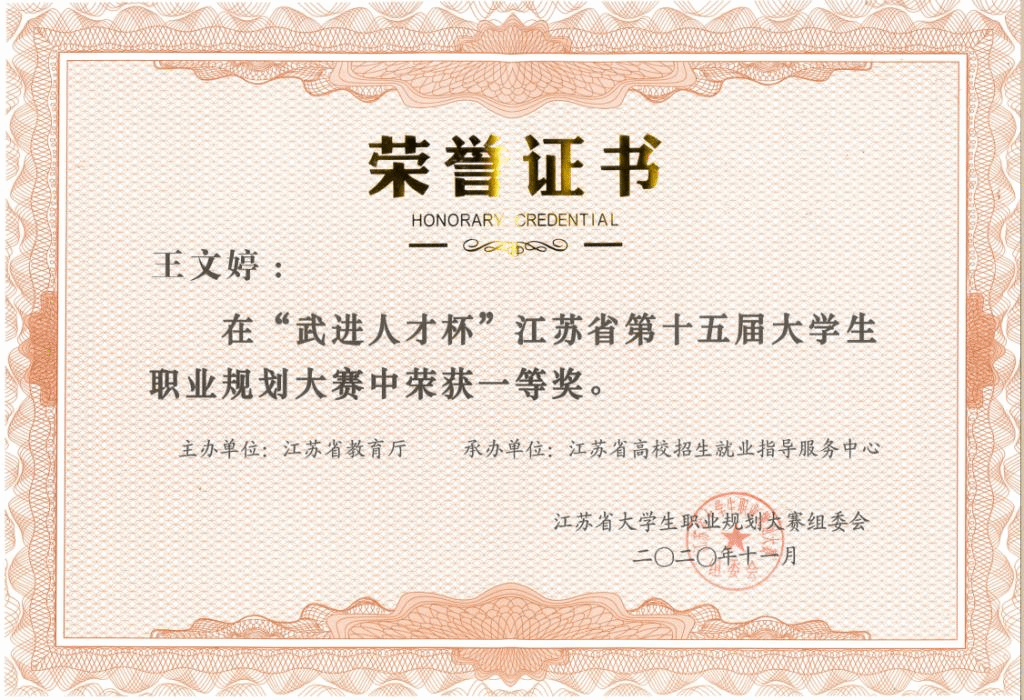 2020年江苏省“武进人才杯”职业规划大赛一等奖