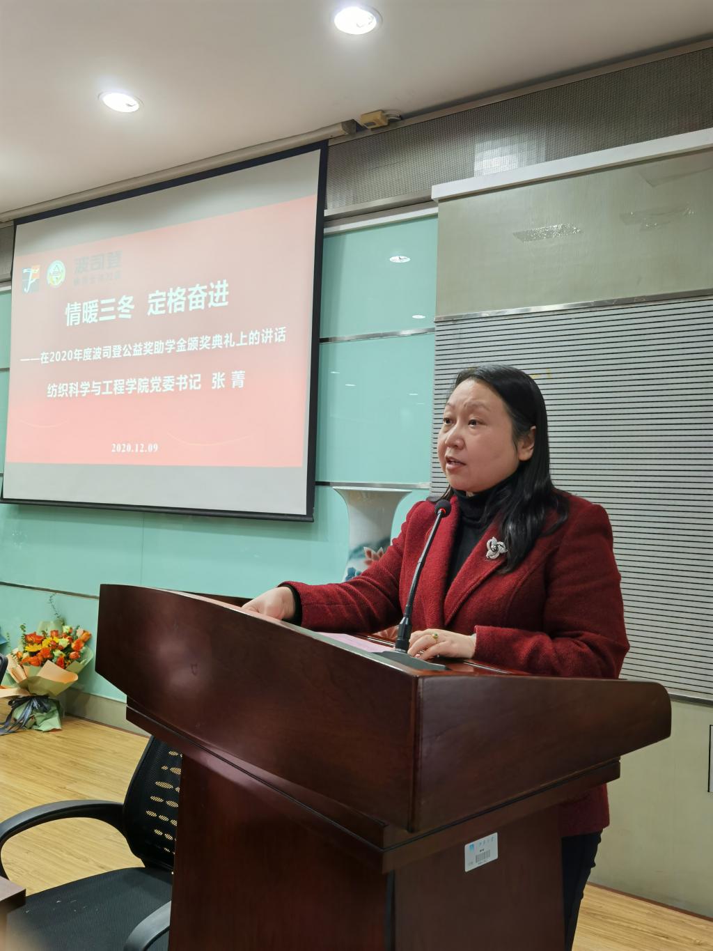 典礼最后,公司党委书记张菁发表了热情洋溢的讲话。张书记首先代表威廉希尔对波司登集团长期以来关心支持williamhill威廉希尔教育事业的发展和纺织服装行业人才的培养表示衷心的感谢,对在座的嘉宾以及波司登集团领导的到来表示热烈的欢迎,对受到奖励资助的82名同学表示由衷的祝贺。张书记表示,近年来,波司登以更高的社会责任与社会价值追求为使命,在科教兴国宏伟战略中勇担责任。波司登公益基金会捐资100万元,在威廉希尔设立“波司登公益奖助学金”,全力支持williamhill威廉希尔教育事业,为纺织服装行业的人才培养助力增益。波司登集团的劳模精神、劳动精神、工匠精神、公益精神展示了新时代民营企业的新风尚。希望在座的各位受奖励资助的同学在今后的学习生活道路上懂得感恩,珍惜当下,学好专业知识,掌握过硬的本领,不断提高实践创新能力,成为未来纺织服装行业内的中坚力量和行业头雁。张书记给同学们提出三点希望:第一、坚定信念,做有理想、有抱负的新时代青年;第二、勤奋学习,做有知识、有才干的新时代青年;第三、修身明德,做有品德、有魅力的新时代青年。张书记最后寄语获奖员工:新时代呼唤新作为,新时代要求新担当,同学们要牢记williamhill威廉希尔“笃学尚行,止于至善”的校训精神,爱校荣校,感恩社会,报效祖国。