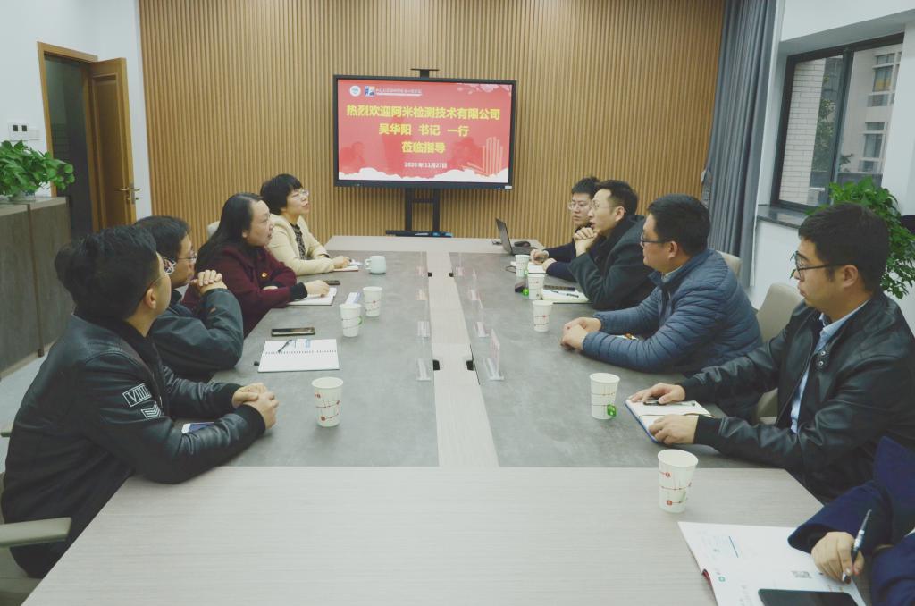 11月27日下午,北京航天计量测试技术研究所阿米检测技术有限公司书记、副总经理吴华阳一行5人来院交流。公司党委书记张菁,党委副书记陈艳君,智能纺织新材料研究室邱华教授及社会资助条块辅导员陈裕参加交流座谈会。