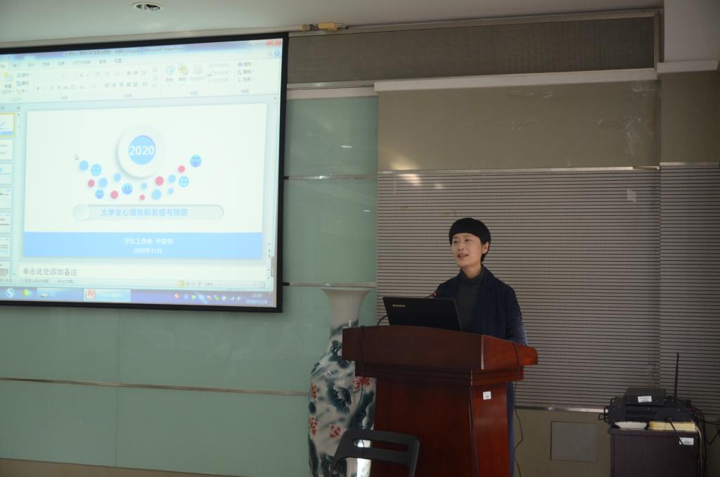 李荣华老师以《老员工心理危机发现与预防》为主题,围绕近期多所高校校园危机事件案例以及危机识别与干预全过程,着重介绍了员工在危机事件产生初期的心理及生理变化。她希望广大教师在日常与员工接触中要善于识别校园心理危机,并及时做好后续的上报及干预工作。同时,她还详细介绍了影响心理健康的各类因素、识别途径以及可以采取的应对措施。