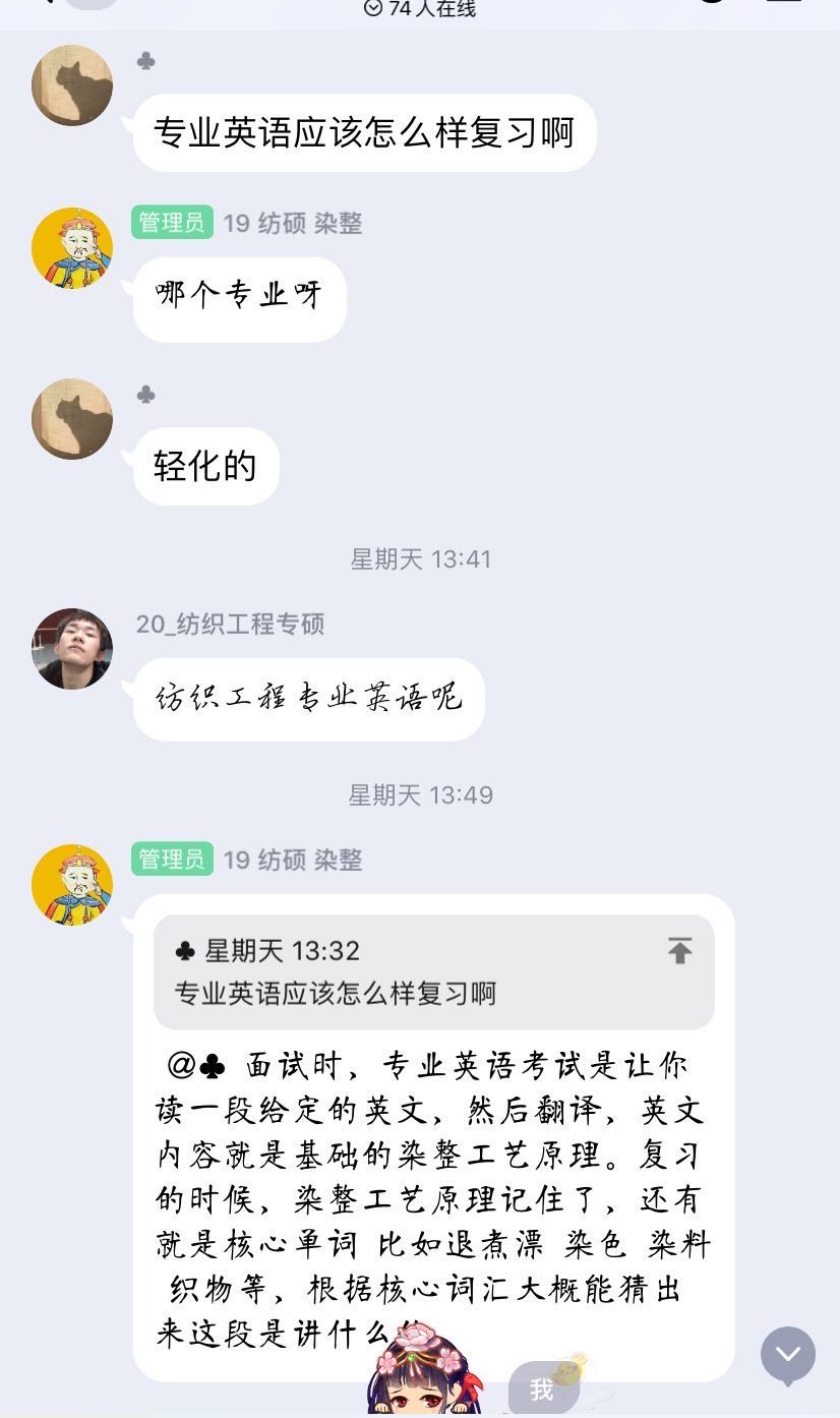 同学们在群内在群内积极提问交流,纷纷表示本次“云”辅导使其受益匪浅,明确了复习方向,对考研复试充满了信心。