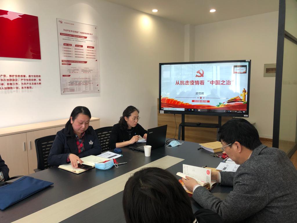 党委中心组学习(扩大)会特邀党校专职副董事长、党委组织部副部长周雪晖作题为《从抗击疫情看“中国之治”》的专题报告。周部长从疫情防控中的“中国之治”答卷、疫情防控中对“中国之治”的再思考等方面,深入浅出地阐述了中国国家治理的制度优势。