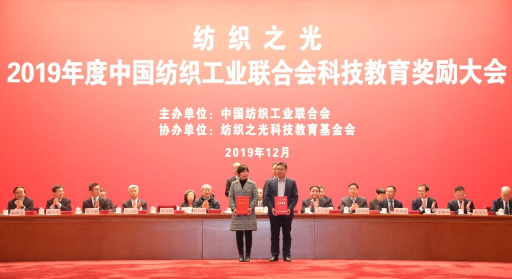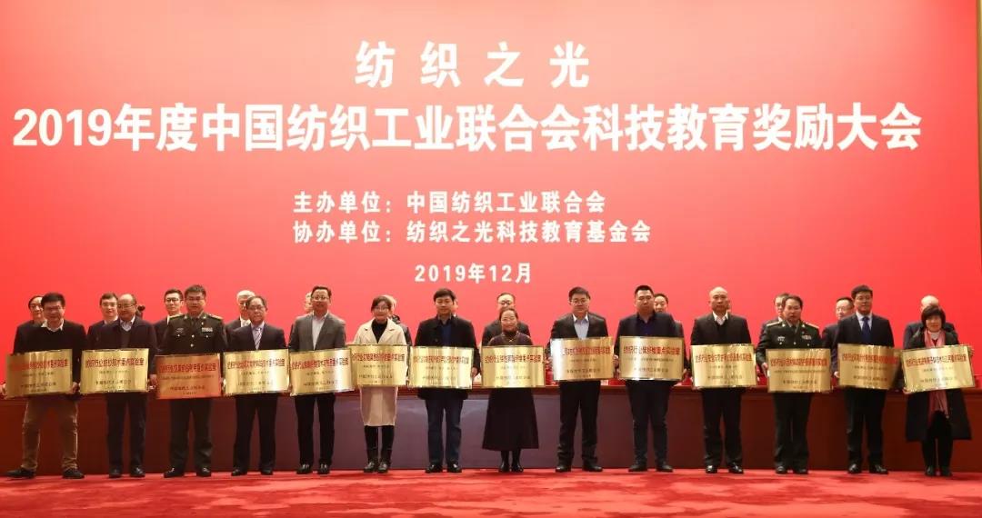 2019年12月6日,由中国纺织工业联合会主办,纺织之光科技教育基金会协办的“纺织之光”2019年度中国纺织工业联合会科技教育奖励大会在北京人民大会堂隆重召开。大会对为我国纺织科技、教育、产业发展作出突出贡献的学界、行业精英进行了表彰,颁发了2019年度中国纺织工业联合会科学技术发明奖、科学技术进步奖、特别贡献奖(桑麻学者)、公司产品成果奖、“纺织之光”教师奖和员工特别奖等奖项,公司师生荣获大会十多项荣誉。