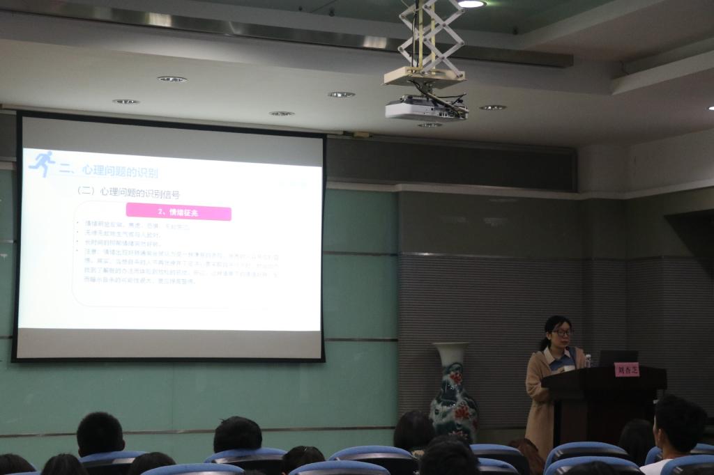 10月23日,公司举办了以“心理危机的识别与干预”为主题的讲座,全体本科生、研究生心理保健委员参加了此次培训。心理健康中心刘杏芝老师从心理问题的定义与识别方法出发,剖析了心理疾病出现的各类情况,并就心理问题的干预提出了建议。培训后,心理健康部部长姚丽华讲解了心理保健委员周报制度内容与具体工作要求。