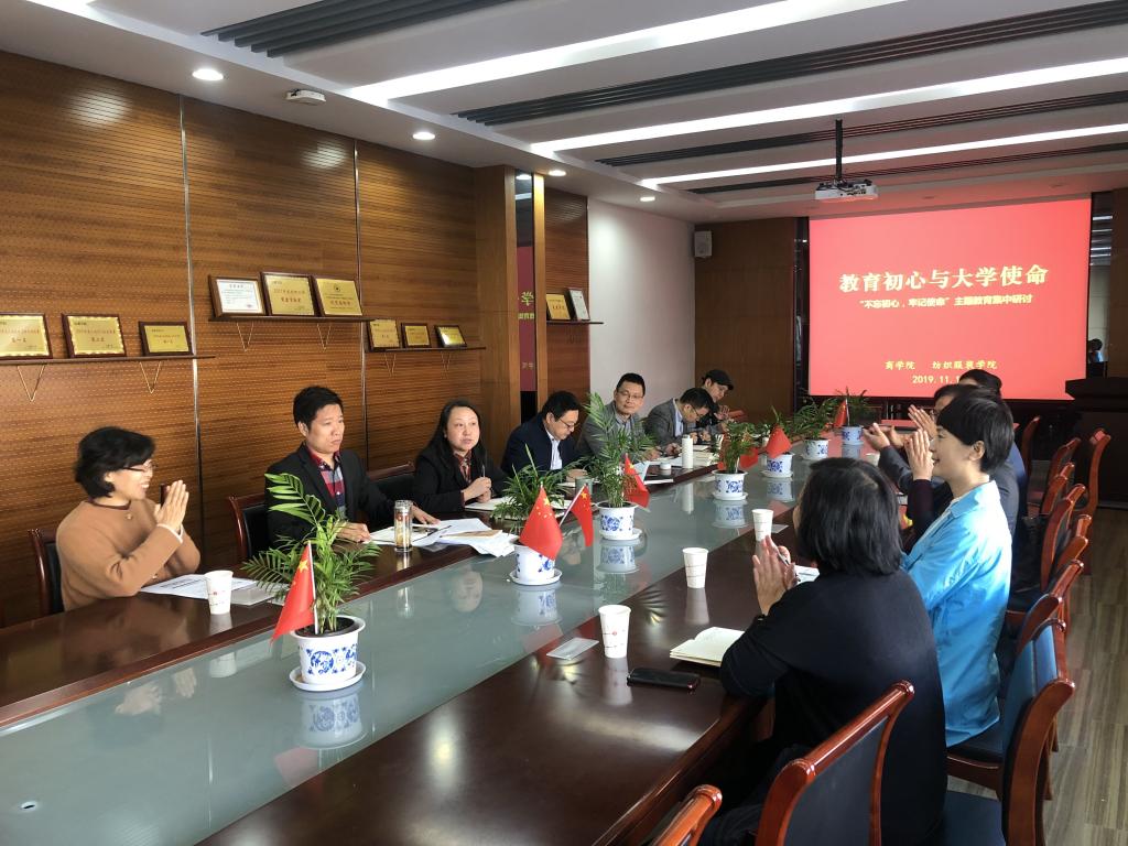学习会上,根据双方党委确定的“教育初心与大学使命”主题内容,围绕落实新时代全国高等公司本科教育工作会议精神,坚持“四个回归”,打造“金专”“金课”,构筑“课程思政”关键课程和课程体系等,由纺织服装公司教师卓越分中心主任谢春萍教授进行专题导学,并展开研讨交流。