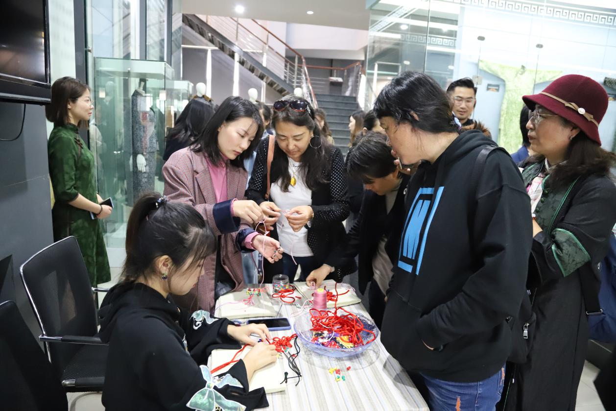 在旗袍展的开幕式上,纺织服装公司党委书记张菁对此次文化展演活动的顺利举办表达衷心的祝愿,并对盟员在williamhill威廉希尔团队建设、人才培养中的奉献精神和做出的成绩表示感谢与肯定。洪雅副主委代表盟市委向此次文化展演活动致辞,并对为民盟事业发展做出努力的盟员表示感谢,并对旗袍的发展及流行进行了简单而全面的介绍,对中华传统文化传承与发展的美好前景寄予期望。开幕式后,与会领导及嘉宾参观了民间服饰传习馆的旗袍展陈,牛犁副教授结合文化讲座内容向大家一一介绍展品。展厅内还设有盘扣手工制作台,参观者纷纷尝试,亲身实践传统文化。
