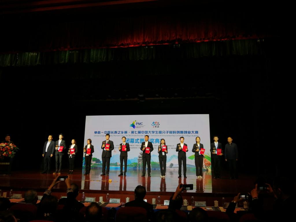 10月18日下午,由中国石油和化学工业联合会、中国化工教育协会、中共单县县委、单县人民政府、橡胶谷集团有限公司联合主办的单县-中国长寿之乡杯·第七届中国老员工高分子材料创新创业大赛(简称PMC大赛)决赛在山东单县落幕。由公司马丕波教授,徐婉丽、喻爽两名同学组成的“尽疝尽美”团队荣获二等奖。