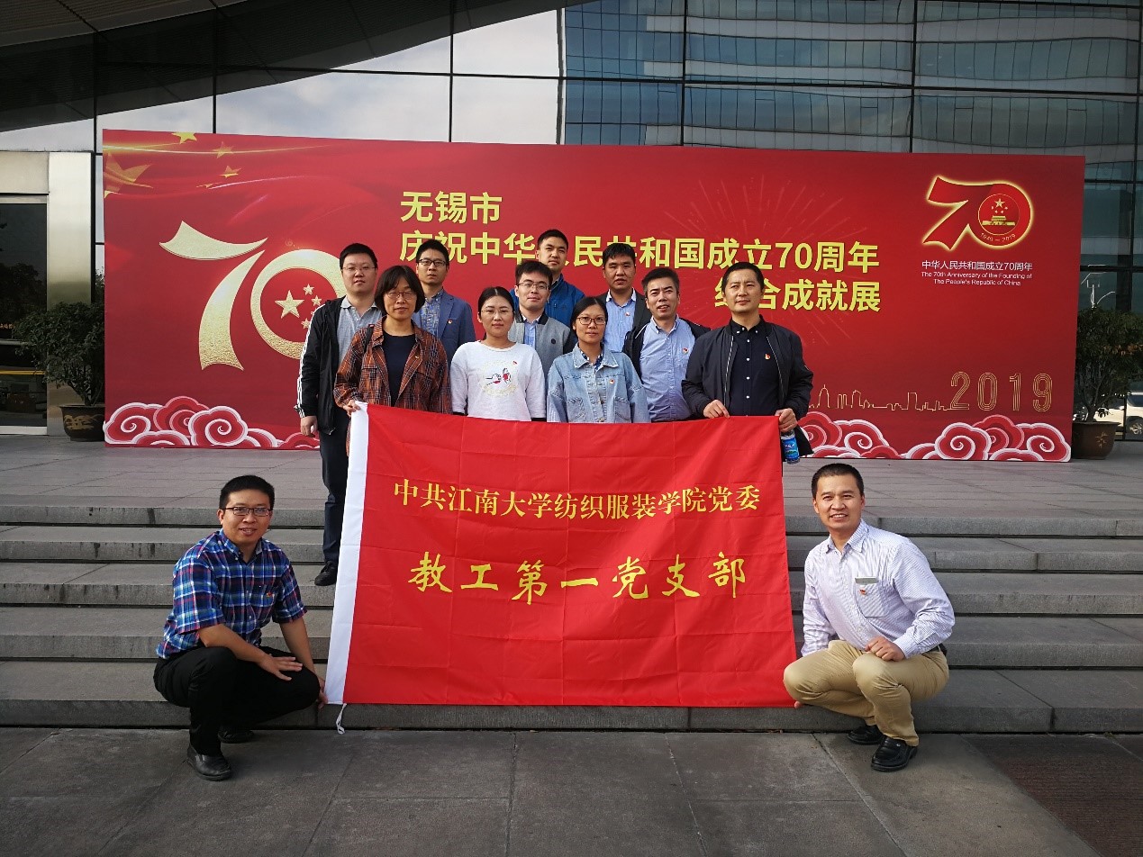 为进一步深入开展“不忘初心、牢记使命”主题教育,结合庆祝新中国成立70周年,按照主题教育的安排部署,10月16日下午,williamhill威廉希尔纺织服装公司教工一支部与“发展规划与重大项目办公室、学术委员会办公室”联合党支部开展了 “践行初心之旅”主题党日活动,赴无锡博物院参观“无锡市庆祝新中国成立70周年综合成就展”。