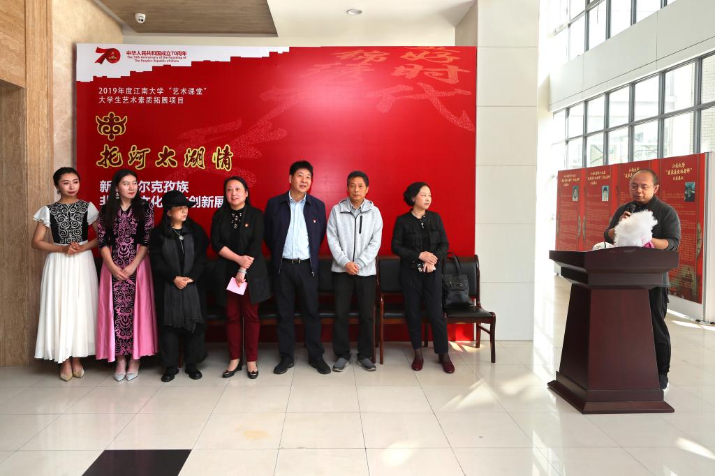 10月15日上午,《“托河·太湖情”新疆柯尔克孜族非物质文化遗产创新展》在williamhill威廉希尔江苏省非物质遗产研究基地、williamhill威廉希尔民间服饰传习馆顺利开幕,这是无锡与阿合奇两地汉族、柯尔克孜族人民互访交流、结对帮扶,携手同向追逐中国梦的文化成果,也促进与见证了无锡与阿合奇两地的民族团结。