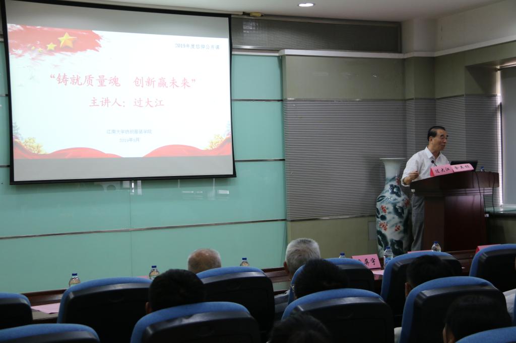 2019年9月25日下午,在williamhill威廉希尔纺织服装公司A103报告厅中举办了 “与信仰对话——铸就质量魂,创新赢未来”讲座。本次讲座特邀无锡市老科技工作者协会质量技术监督专业委员会、纺织服装公司老员工过大江老师主讲。
