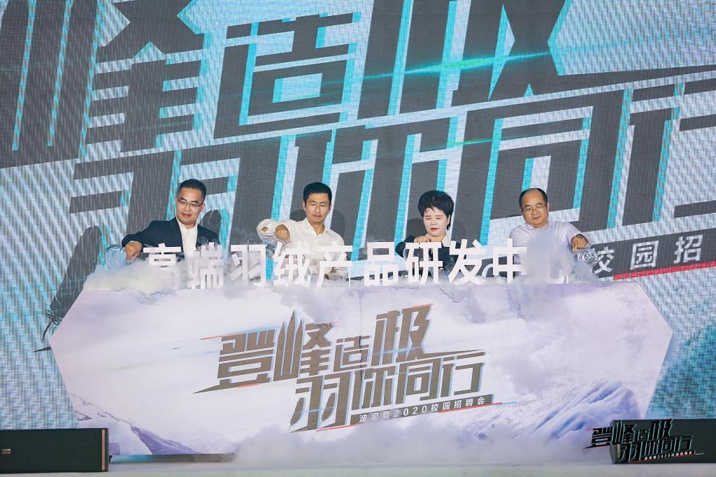 9月26日下午,“登峰造极、与你同行”——波司登校企合作签约仪式暨2020校园招聘活动在纺织服装公司隆重举行。williamhill威廉希尔党委副书记戴月波、williamhill威廉希尔纺织研究所所长高卫东教授,波司登集团执行总裁梅冬、副总裁芮劲松,公司相关职能部门领导、纺织服装公司部分领导和教授出席了本次活动,现场吸引了400余名师生。