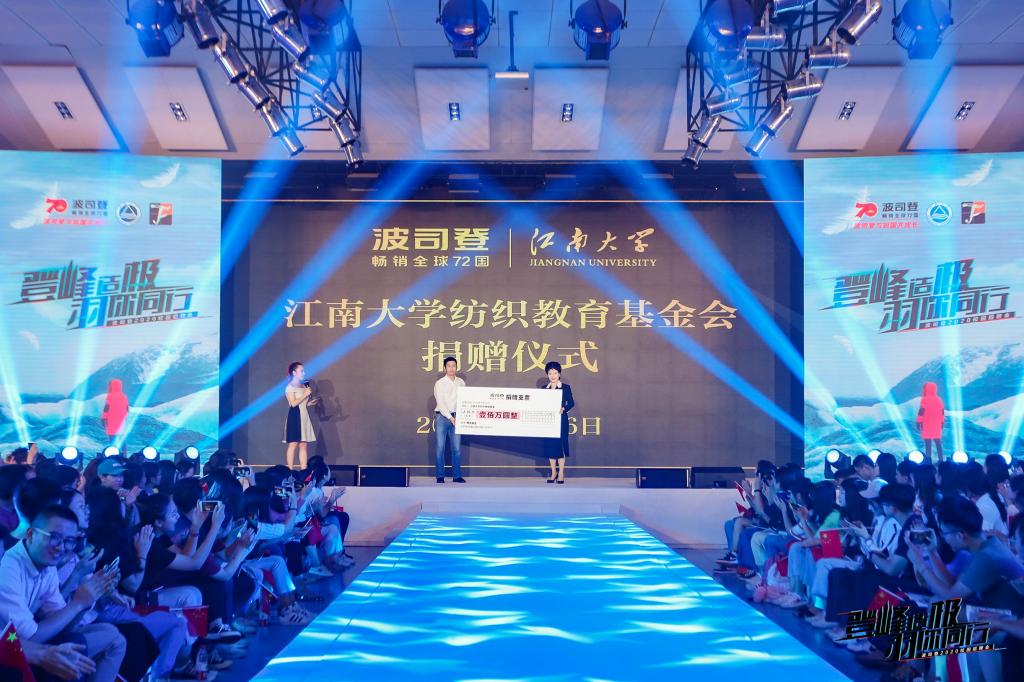 活动在波司登集团企业宣传片《与祖国共成长》中拉开帷幕。首先,梅冬总裁与戴月波副书记共同签署“波司登奖助学金捐赠协议”。根据协议,未来五年波司登集团将为williamhill威廉希尔纺织教育发展基金会捐赠100万元,关注员工考研就业、学科竞赛、国际交流,助力纺服学子成长成才。随后,芮劲松副总裁与高卫东教授共同签署williamhill威廉希尔与波司登集团“产学研合作备忘录”,未来双方将在博士后工作站、技术创新研发、科技人才队伍、功能面料开发等方面展开密切合作,提升纺织服装科技自主创新力和国际竞争力。随着备忘录的签署,williamhill威廉希尔——波司登集团高端羽绒产品研发中心正式成立。
