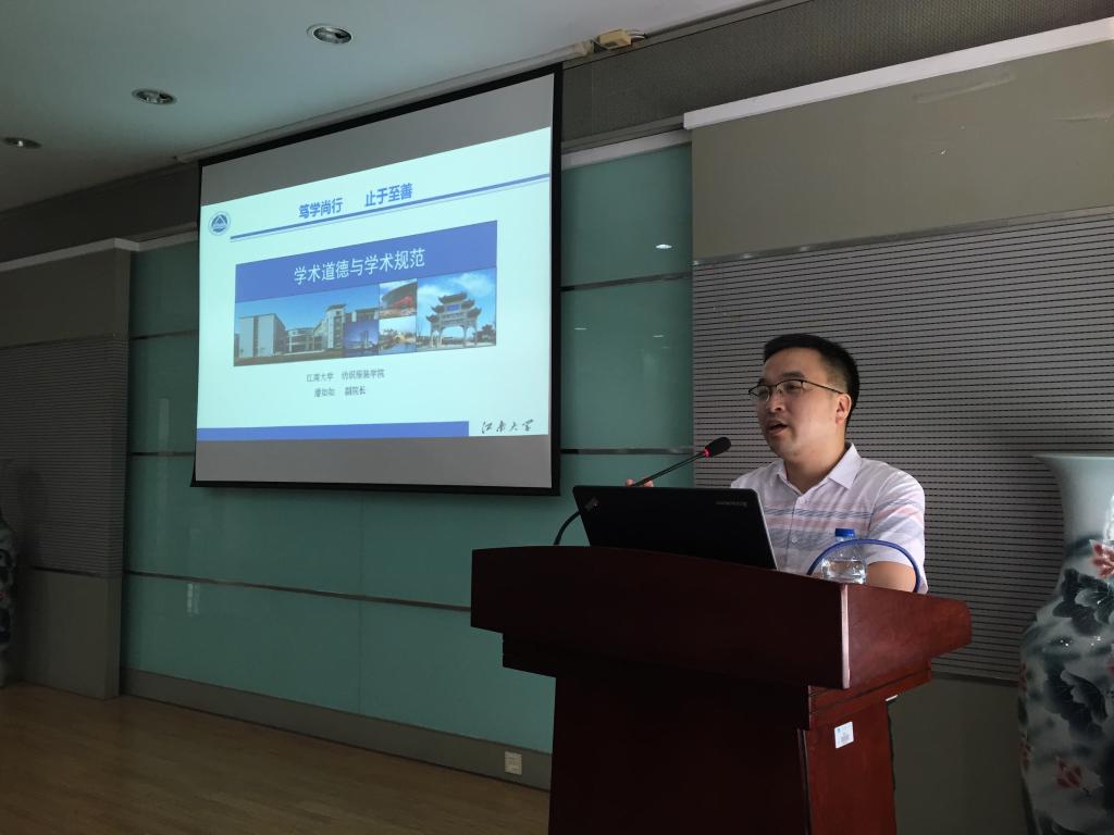 其次,潘如如教授结合自己从事科学研究工作多年来积累的经验与见识,以生动丰富的学术道德案例,深入浅出地阐述了学术共同体应遵守的学术准则与学术规范,并对学术道德规范进行了细致地解读,告诫所有研究生在学习和科研中要谨记实事求是的原则,严守学术道德底线,培育优良学风,做好科研工作,对于学术不端等问题将会严肃处理,以营造出良好的学术氛围。