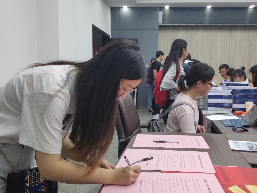 为帮助研究生新同学认识恪守学术道德及防范网络诈骗的重要性,迎新现场还开展了相应主题的签名活动。