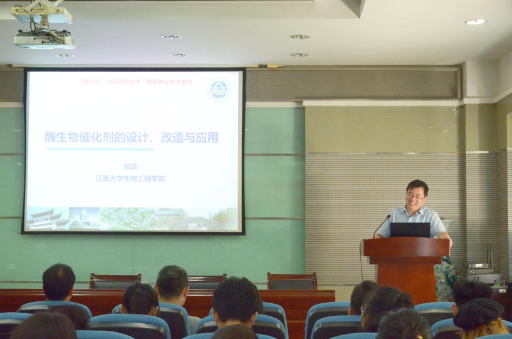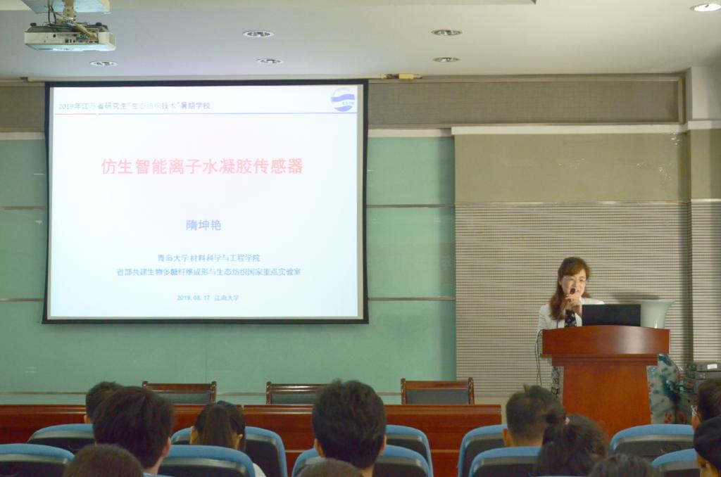 首先,江南老员工物工程公司刘龙教授就酶制剂产业情况、研究案例以及今后研究重点三个方面展开,做了“媒生物催化剂的设计、改造与应用”的学术报告,他认为酶生物催化剂设计改造和应用酶制剂产业对可持续发展、绿色环保以及对传统化工的期待发挥了很大的作用,未来也会在不断地产业实践中对酶进行挖掘和发现,解决实际遇到的难题。随后,青岛大学材料科学与工程公司隋坤艳教授从仿生学角度介绍了一系列智能离子水凝胶传感器,他们的团队凭借地理优势,充分利用海洋生物质材料,真正做到绿色生产工艺,并介绍了仿生离子皮肤、3D打印、仿生软体机器人等方面的应用,她说任何研究都应考虑更深远的意义以及实际应用。
