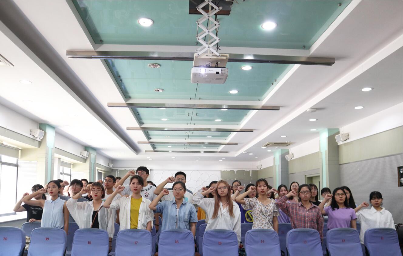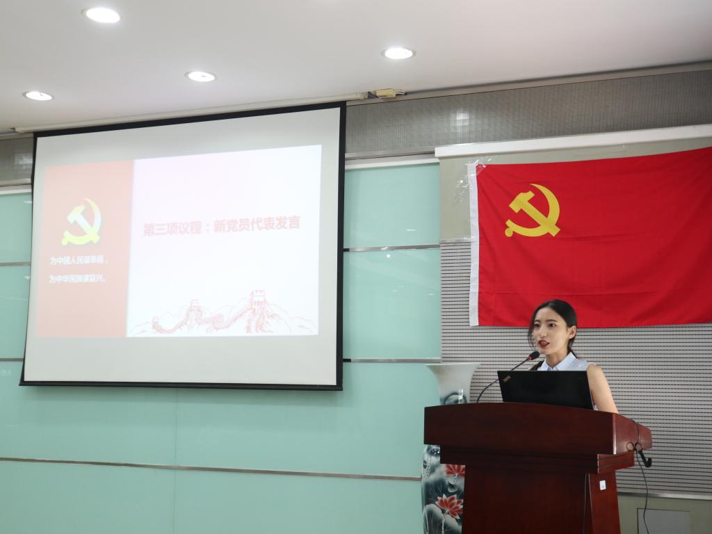 本科生高年级党支部书记陈裕领誓,53名新党员面向党旗庄严宣誓,发出了为共产主义奋斗终身的铮铮誓言,表达了对党的深厚感情和为党的事业不懈奋斗的决心。新党员代表王心怡作了表态发言。