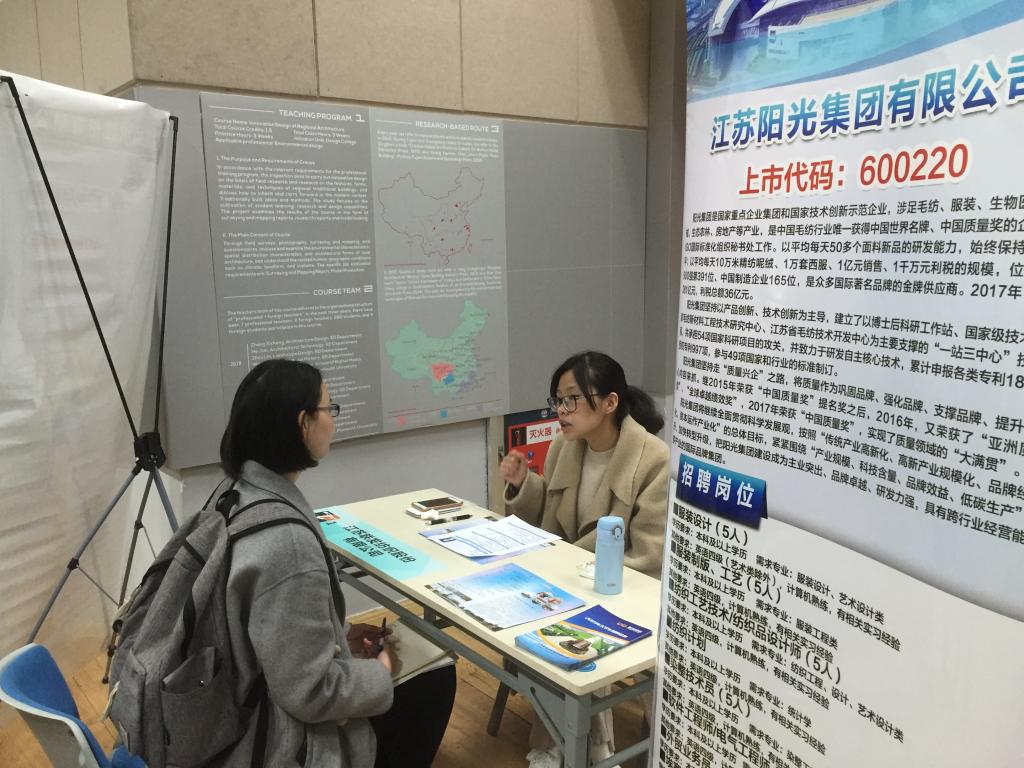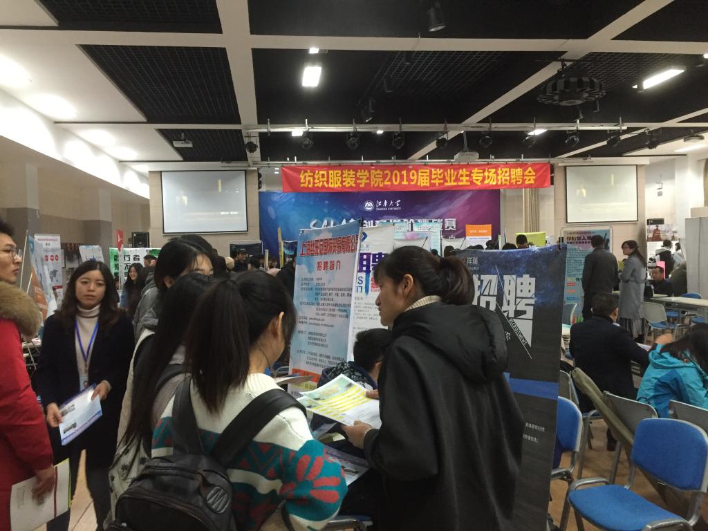 公司2019届毕业生共517人,其中本科毕业生363人,研究生毕业生154人。本次招聘会共有来自省内外的58家纺织、轻化、服装行业的单位参会,其中包括中国纺织对外经济技术合作有限公司、江苏阳光集团有限公司、江苏国泰华盛实业有限公司、云蝠投资控股有限公司等国内知名企业,共为毕业生提供就业岗位1128个。本科生平均起薪:6000元/月,研究生平均起薪:8000元/月。