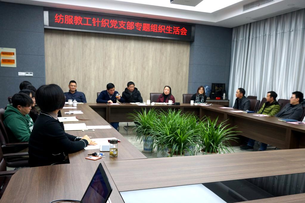 12月12日下午,纺织服装公司教工三支部“弘扬爱国奋斗精神,建功立业新时代”专题组织生活会在纺服B101会议室召开。副董事长田备、公司党委书记张菁、副经理黄峰林、针织中心主任蒋高明、公司党委委员丛洪莲、纺服教工三支部全体党员以及针织中心博士生党员参加了本次支部专题组织生活会。