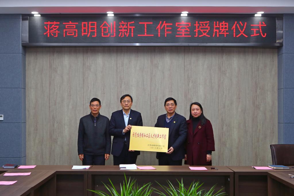 2018年12月24日下午,首批江苏省科教系统示范性劳模和工匠人才创新工作室-蒋高明创新工作室授牌仪式在纺织服装公司B101会议室举行。副董事长吴正国、校工会主席冯群康、纺织服装公司党委书记张菁、针织中心主任蒋高明教授及针织中心全体老师参加了本次授牌仪式,会议由校工会副主席李红主持。