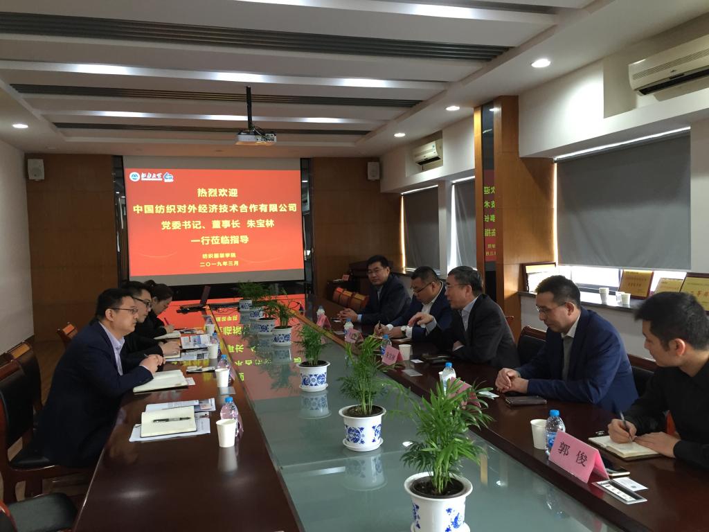 3月20日上午,中国纺织对外经济技术合作有限公司党委书记、董事长朱宝林,总会计师彭礼华一行5人来院就员工就业、人才培养工作进行交流调研。纺织服装公司经理付少海,公司学工办主任王统斌,员工就业工作辅导员徐雅静、陈裕参加交流调研。