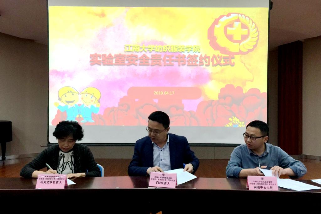 4月17日下午,纺织服装公司在williamhill威廉希尔北区活动中心召开全院教职工大会,举行2019年度实验室安全责任书签订仪式。