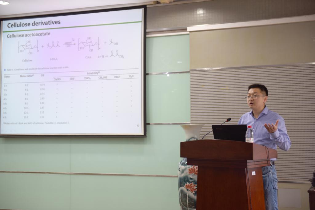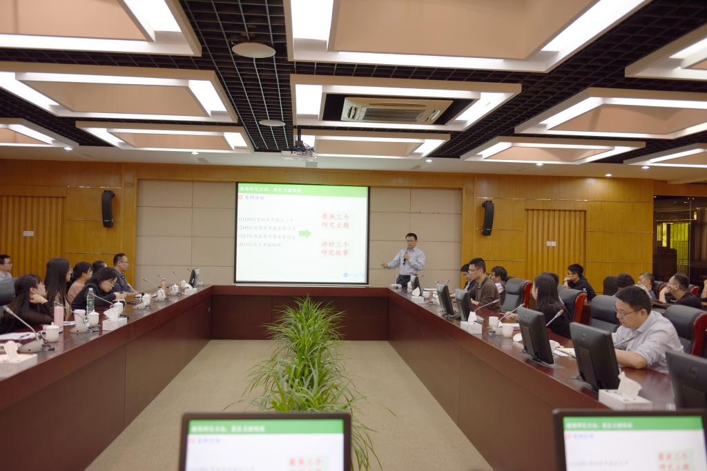 此次“青椒沙龙”包括专题学术报告和学术经历分享两个部分。上午的专题学术报告由付少海经理主持,隋晓峰教授首先以“Preparation, Structures and Multifaceted Applications of Natural Polymers Based Functional Materials”为题,介绍了他在功能高分子材料的设计、合成、表征及应用,包括高分子表面修饰、响应性凝胶和水基高分子乳液的研究和应用;覃小红教授 “纳微纺织纤维集合体的研究进展”的报告,分享了自己对纳微纤维制备理论、纳微纤维装备、纳微纤维结构非织造材料、纳微纤维纱线等方面的研究工作;最后王栋教授围绕“基于纤维材料的交叉学科研究团队”项目,重点从纤维基生物医用材料、纤维基能源电子材料、纤维基分离净化材料、功能聚合物及纤维材料等方面作了分析与报告。下午,在行政楼B307会议室以学术经历分享为主题举行座谈会,会议由张菁书记主持。会议伊始,刘立明教授围绕新时代背景下如何做“好研究”,如何做“好教师”两个方面,对现代大学人才培养、科学研究、社会服务、文化传承的基本功能与高校学者的使命进行全面解读。他以身边真实的实验室故事为引子,分享了教书育人与研究服务如何相辅相成。作为研究者,要以行业进步为目标,优化时间精力,凝练研究方向;作为学科带头人,要率先垂范,打造高绩效的团队,特别是要以德立身,顶层设计团队目标,创造积极向上文化氛围;作为导师,要倾心服务员工,引导员工求知问学,助力员工优研优博。他最后鼓励大家争做一流教授,争做一流研究者,服务公司“双一流”建设新格局。接着,王栋、覃小红、隋晓峰三位教授也结合自身的成长发展之路,敞开心扉,畅谈青年教师的成长过程中的关键环节和核心要素,对老师们提出的问题真诚释疑、坦率解惑,现场气氛生动活泼,诙谐幽默又接地气,赢得掌声阵阵,开拓了青年教师的思路,破解了学术与研究的困惑。