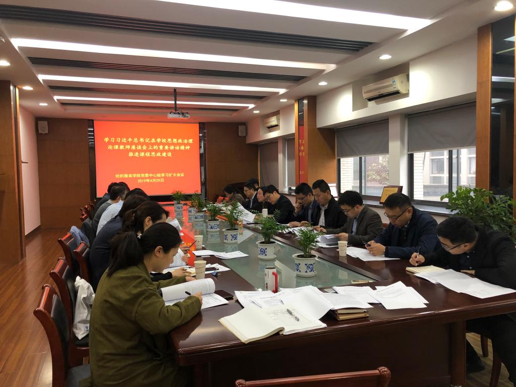 4月29日上午8:00,纺织服装公司党委中心组(扩大)会议在A30会议室召开,专题学习习近平总书记在公司思想政治理论课教师座谈会上的重要讲话精神,推进课程思政建设。全体公司党委委员、教师卓越分中心主任、系主任、经理助理、分工会主席、分团委书记、部分责任教授代表和教工支部书记代表参加了会议。会议由公司党委书记张菁主持。