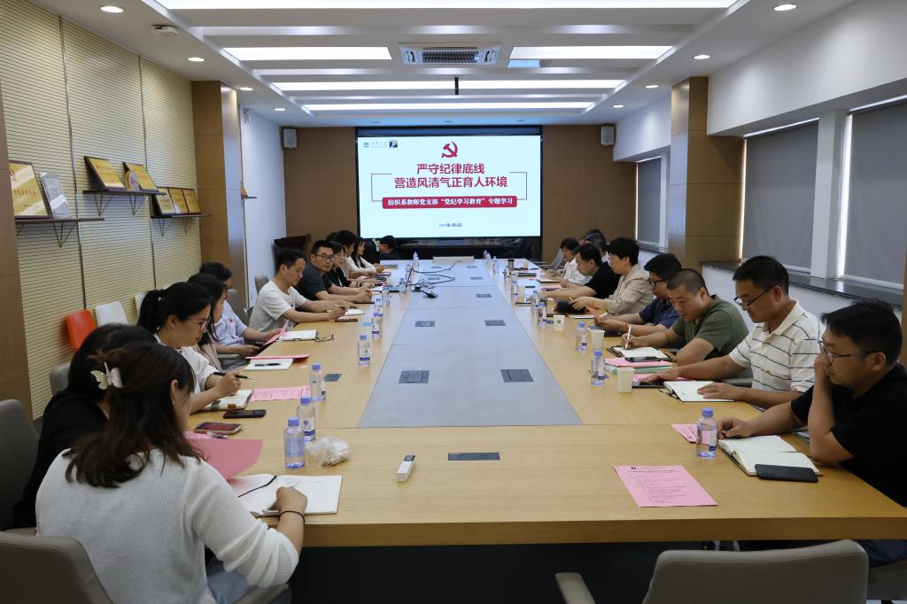 党支部副书记李大伟、纪检委员李文兵分别以“以纪促教:守好师德底线,弘扬高尚师风”“以纪促研:守好学术底线,助力科技强国”为题,领学了《新时代高校教师职业行为十项准则》《研究生导师指导行为准则》《负责任研究行为规范指引》等文件要求。通过重申教书育人规范、再学教师纪律要求,呼吁党员教师自觉维护职业形象、主动提振师德尊严。