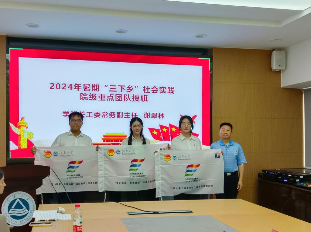 活动中,陈裕进行工作部署,介绍公司2024年暑期社会实践组织情况;伏曦宣读院级重点团队名单,今年公司共组建9支院级重点团队,其中3支入选校级重点团队,1支推荐为省级重点团队;谢翠林向院级重点团队授旗;“鼋梦丝路”纺织援疆团负责人陈顺和“织光行动”返乡筑爱实践团负责人李铭宇代表重点团队发言,他们表示将以青春的热忱和专业的知识投身实践,在基层一线的广阔舞台上开启实践成长之旅。