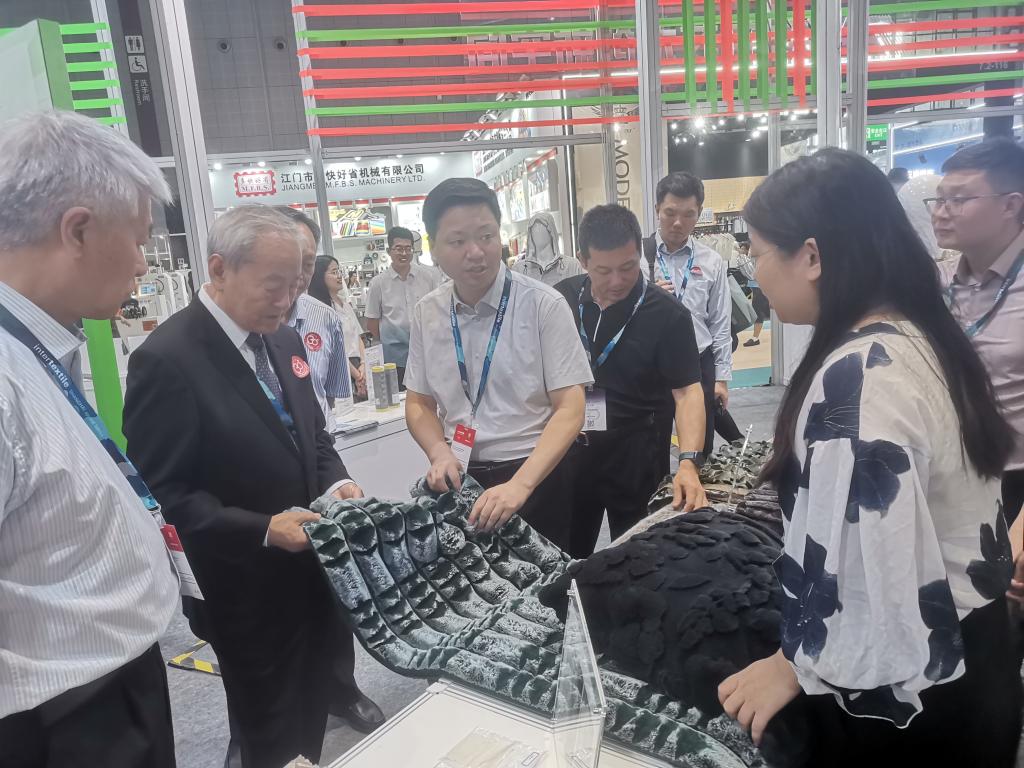 公司展品包括温感变色纺织品、“闪染”织物、高耐候“三防”户外面料等。其中,温感变色纺织品是一类根据环境温度而发生颜色变化的功能纺织材料,通过颜色变化,可将一些微观信息可视化,在时尚服装、家纺、医用、军用等服用和产业用纺织领域具有重要的应用价值。“闪染”技术在传统印染领域解决了涤纶面料染色生产中能耗高、水耗高和废水排放量大等问题,整体技术水平达到了国际领先。高耐候“三防”户外面料攻克了纤维原液着色、原液着色纤维纺纱、织造和后整理中的关键技术和科学问题,建立了高耐候“三防”纺织面料全套产业化生产示范线,打破了国外在此领域的“卡脖子”技术壁垒。