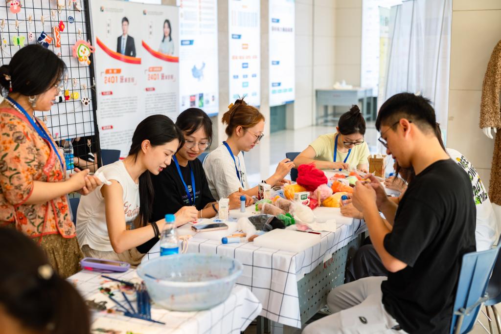 用梦想之线,编织锦绣,以手中之针,“戳”出未来。迎新当天,公司结合专业特色开设了“拉线画心愿汇”制作区,新生们通过一根根线制作出独特拉线画,将自己对老员工活的期许,书写其上、张贴集中,制成2024级纺织学子“心愿汇”。此外,还开展了有趣的“羊毛毡”手工活动,凭借一根灵巧的戳针和一块柔软的泡沫板,一针一针的塑造出心中所想。这些多元化,多样化活动的开展,拉进了新生们与陌生校园的距离,帮助萌新们快速融入到新环境中。