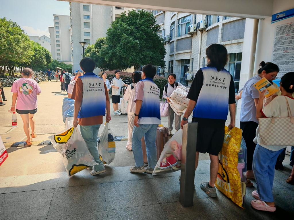 公司员工会、研究生会、党员先锋队组建了志愿者服务队,从朝霞出现到晚霞消逝,志愿者们的贴心服务为新生搭建了一条充满温情的迎新通道。他们的身影穿梭在迎新点与宿舍楼之间,为新生提供校园引导、搬运行李,为新生完成入学报到、材料领取,抑或是举起手中相机定格记录那充满活力的灿烂笑容,为萌新们的来“纺”提供了细致的服务与温暖。