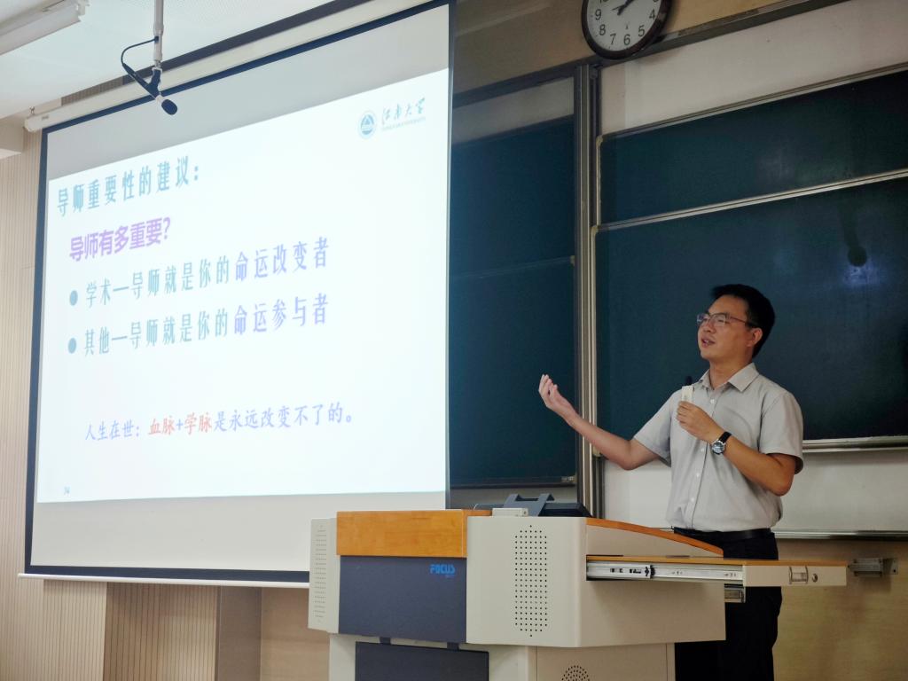 马丕波首先作了学术道德与学术规范的入学教育,通过一系列生动详实的警示案例,明确指出科研上的两条“红线”,警示新生在科研路上坚守学术道德底线,拒绝抄袭、造假行为,弘扬科学精神。随后,他就公司科研团队、导师研究方向和导师双选等方面作了详细解读。