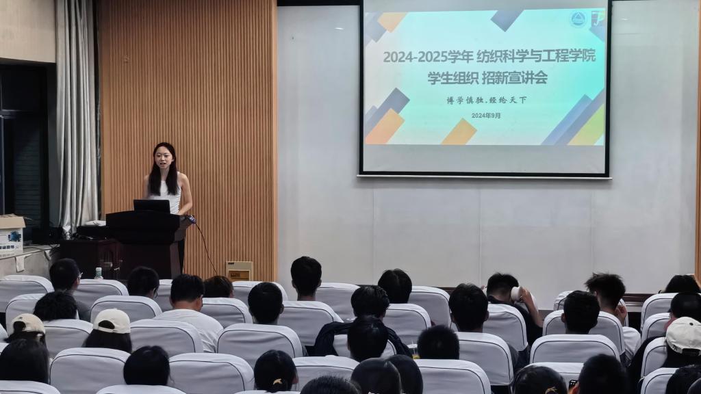 9月11日晚,公司员工组织招新宣讲会在公司A103和B104正式开始。主持人张宁恬、宋雨虹从公司员工组织概况及架构两个方面进行简要阐述。各部门宣讲人依次从部门简介、成员介绍、部员收获、招新要求等多个方面展开宣讲,向新生们展示各个部门的独特魅力,展现其中蕴含的无限可能。宣讲后,各部门召开招新初试,纺织学子们彼此间建立起一道道无形的桥梁,共同在纺院大家庭中找寻温暖、结识伙伴、收获成长。