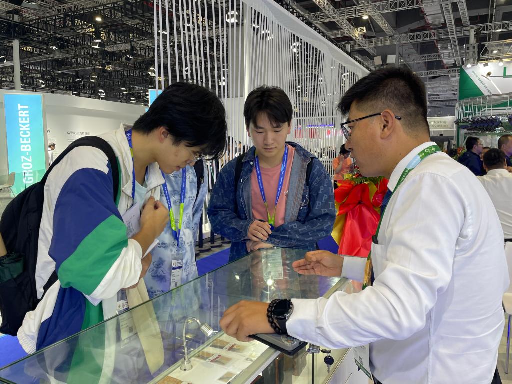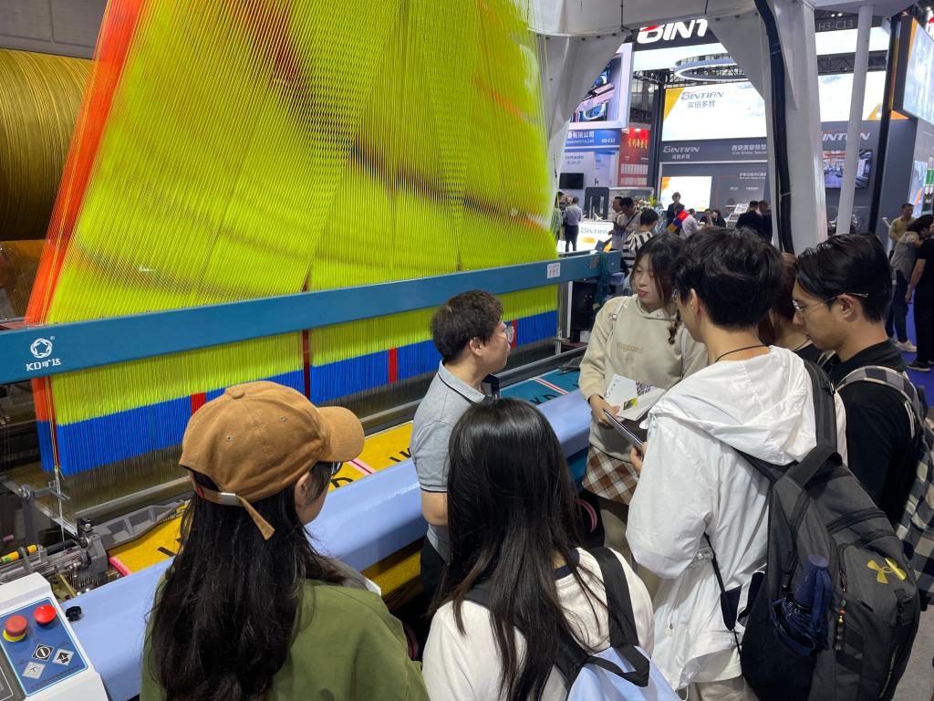 参观过程中,同学们认真感受每一台机器所讲述的纺织工业创新故事,并与专业课老师、参展商代表进行深入探讨,收获颇丰。同学们在多元展区中穿梭,近距离观察纺纱、织造、染整等多个纺织核心生产环节涉及的先进设备,了解化纤、染化料、墨水等新型原材料,体会产业链一站式高效对接、协同发展的磅礴力量;了解智能纺机设备创新升级新成果,感受智能化引领强大优势;学习融合人工智能AI互联、大数据等前沿科技呈现出的新技术、新应用,全方位领略创新驱动的发展趋势。在创新浪潮席卷全球的当下,此次参观不仅是一次学习之旅,更是激发员工创新思维的契机。同学们接触了专业前沿,了解到全球纺织行业向智能化、绿色化、融合化不断迈进的趋势,从而开阔全新视野,激发对未来纺织科技的兴趣与热情。