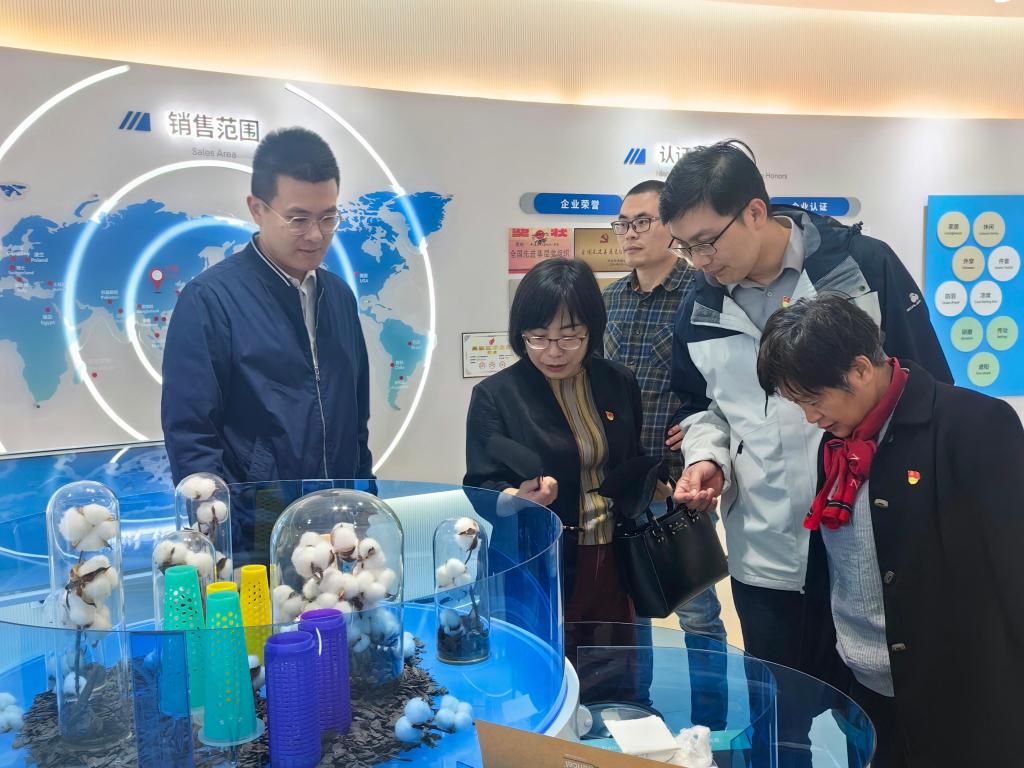 10月19日,公司党委副书记、副经理杨莉勤,及纺织系教师党支部一行赴江苏大生集团有限公司开展“探寻江南纺织精神”主题党日活动,开展了一系列党组织联建、产学研对接及红色教育活动,旨在进一步挖掘江南纺织精神,促进校地产学研深度融合,加速科技创新成果转化,并强化校企联合人才培养机制,共同探索党建引领下的高质量发展新路径。大生集团党委书记、董事长漆颖斌,党委副书记、总经理包卫东,党委委员、副总经理赵志华,党委委员、副总经理陈建,生产技术部部长王小舒,生产技术部副部长李兰女,党政办公室主任潘宇等参加了座谈交流。