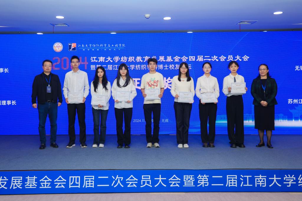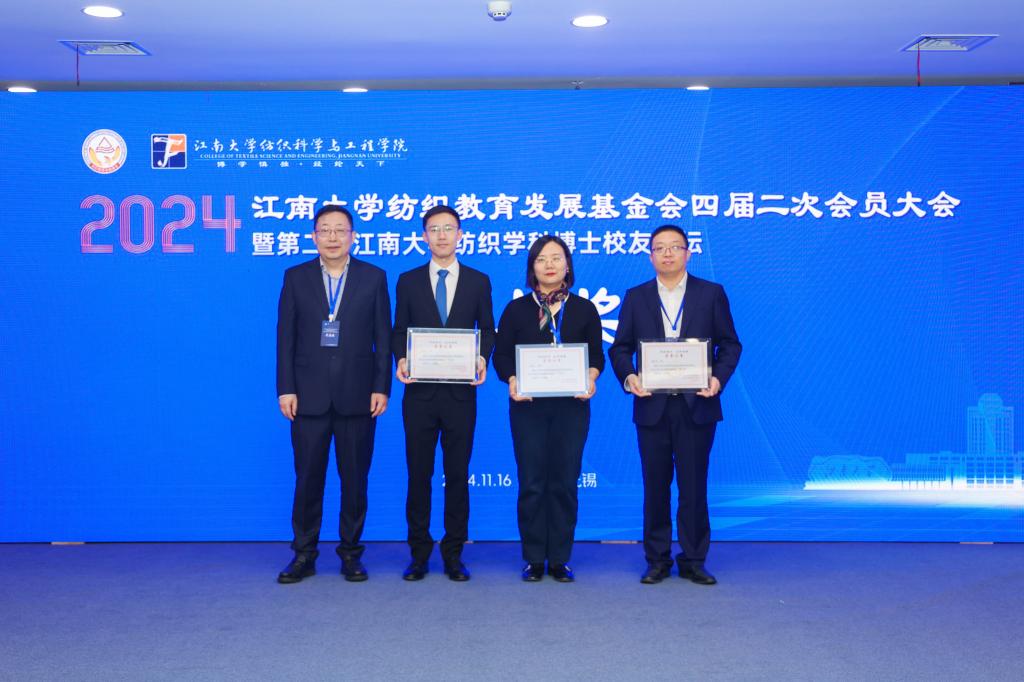 奖教奖学颁奖环节,3位教师荣获“育人奖”,36位员工荣获“新锐奖”,9支队伍荣获“竞赛奖”,15位员工自毕业后连续三年服务于纺织服装行业,荣获“征程奖”。轻化工程系主任殷允杰、原纺织1805班陈宣妤分别作为获奖师生代表发言。