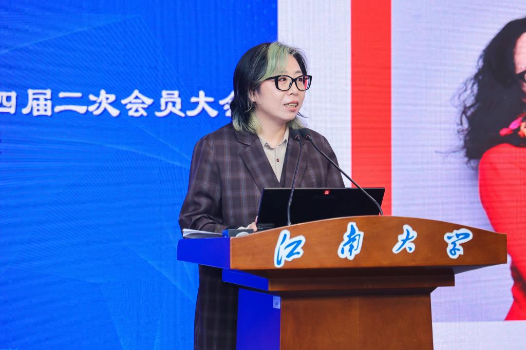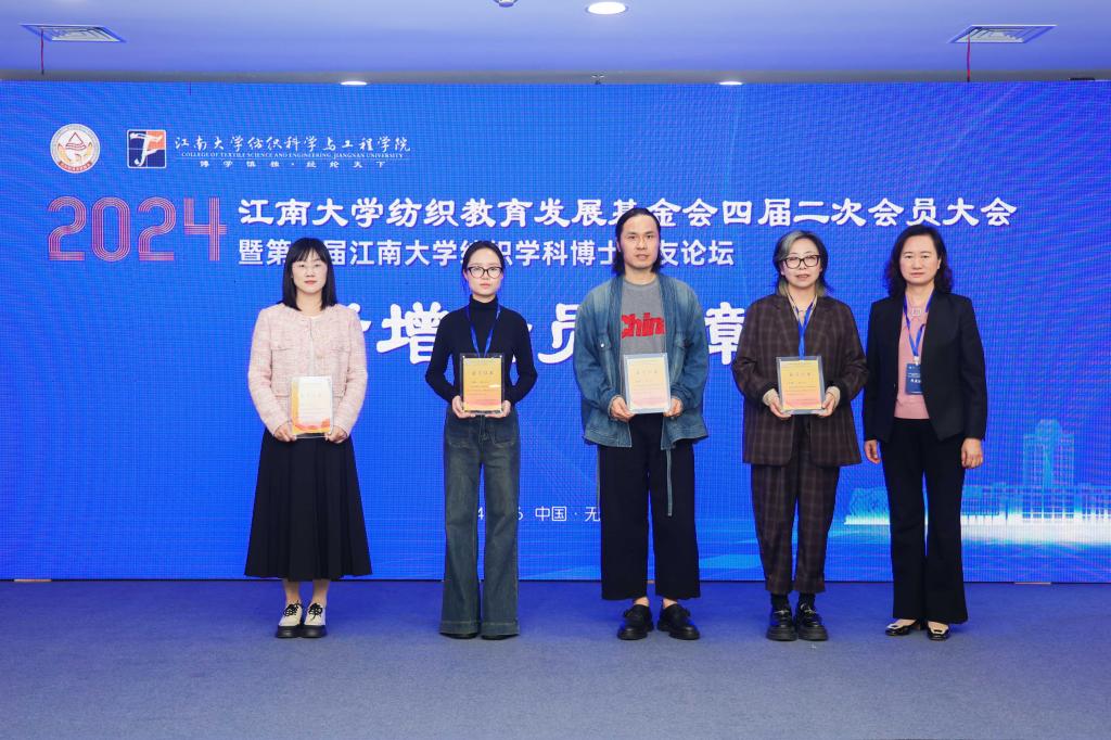 大会对本年度新增的15位会员颁发了会员证、为2024年度杰出会员颁发纪念奖杯。周晔珺作为老会员代表发言,她勉励在校员工增强专业自信,勤于学习、善于思考、勇于作为,努力将个人进步与时代发展、国家前途命运相结合。海裔维科技有限公司创始人张巍作为新会员代表发言,她深情地回忆了在公司生活的点滴,强调了公司教育在她的人生旅程中所起的导航作用,表示将继续发扬传承“纺织服装精神”,助力行业以及公司教育事业的发展。
