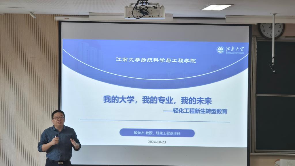 经理付少海为2024级新生讲授“开学第一课”,他深入解读纺织科学与工程团队建设,展望行业发展前景,并提出“五牢记、五不要”建议,激励新生为纺织新质生产力蓄能,为“纺织+”产业技术发展蓄力,做有德、有才、有理想、有追求的新青年。