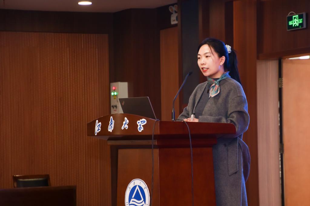 颁奖仪式后,“吉润杯”老员工创新创业大赛获奖团队进行了精彩的项目分享,他们以严谨的逻辑、生动的案例展示了项目的亮点与发展的潜力。紧接着,苏静作题为《纺织梦想,竞赛启航—探索“纺织+”学科新未来》的主题分享,她强调了守正创新、革新突破思维重要性,还与大家探讨了培养创新思维的方法,鼓励同学们要锐意创新,勇于突破自我。