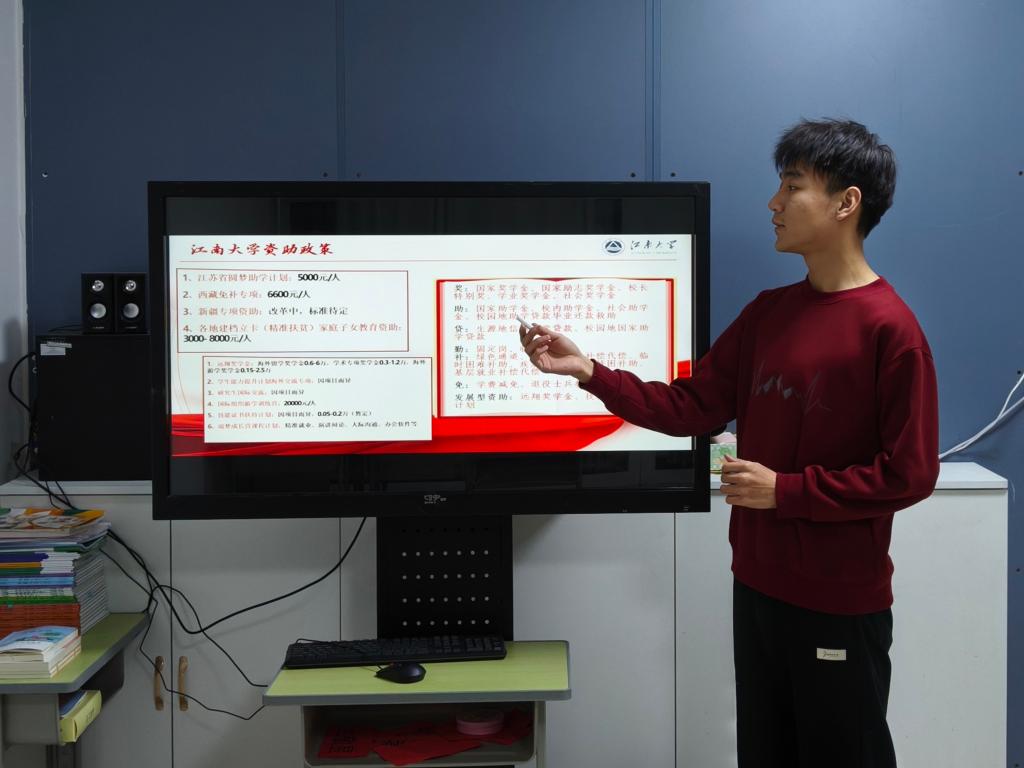 轻化2201班的赵勃涵同学奔赴内蒙古自治区赤峰市六西街党群服务中心,为中高考应届生及其家长们开展了一场资助政策解读会。他围绕江苏省本科生资助政策以及公司相关资助举措,通过耐心的政策讲解、互动答疑以及生动的案例分享,解答了员工家长们普遍关心的申请条件、办理流程等问题。