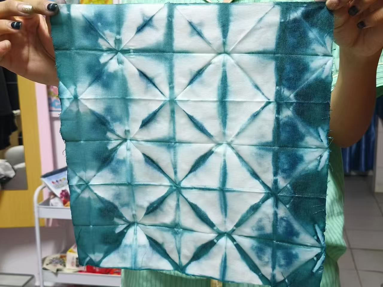 为了更加直观地了解纺织技艺的精髓,来自山东临沂的邵雪同学、吉林白城的李帅池同学以及辽宁大连的李姗姗同学,毅然决然地投身于扎染工艺的实践之中。他们用心去感受色彩的交融与碰撞,用双手去触摸纤维的质感与温度。在扎染的世界里,他们不仅领略到了纺织技艺的独特魅力,更深刻领悟到了纺织精神中蕴含的创新与传承的力量。