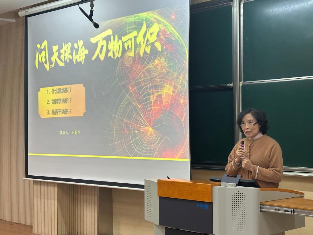 谢春萍教授以“探天问海,万物可织”为主题,从“什么是纺织?”“如何学纺织?”“是否干纺织?”三个维度展开讲解。她以生动案例阐释了纺织科技的广泛应用,指出纺织不仅是传统产业,更是支撑航空航天、深海探测、医疗防护等高新领域的核心力量,彰显了“柔韧致远,创新无限”的行业精神。在谈到学习方法时,谢教授强调“知行合一”的重要性,鼓励同学们夯实专业基础,培养跨学科视野,在实践中提升创新能力。针对就业方向,她分析了纺织行业在智能制造、绿色材料等新兴领域的发展潜力,勉励员工坚定专业自信,以科技赋能纺织,服务国家战略需求。